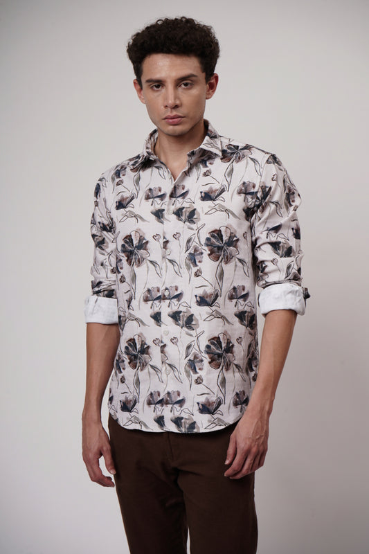 -12% OFFRUSTIC FLORAL SHIRT - WHITE