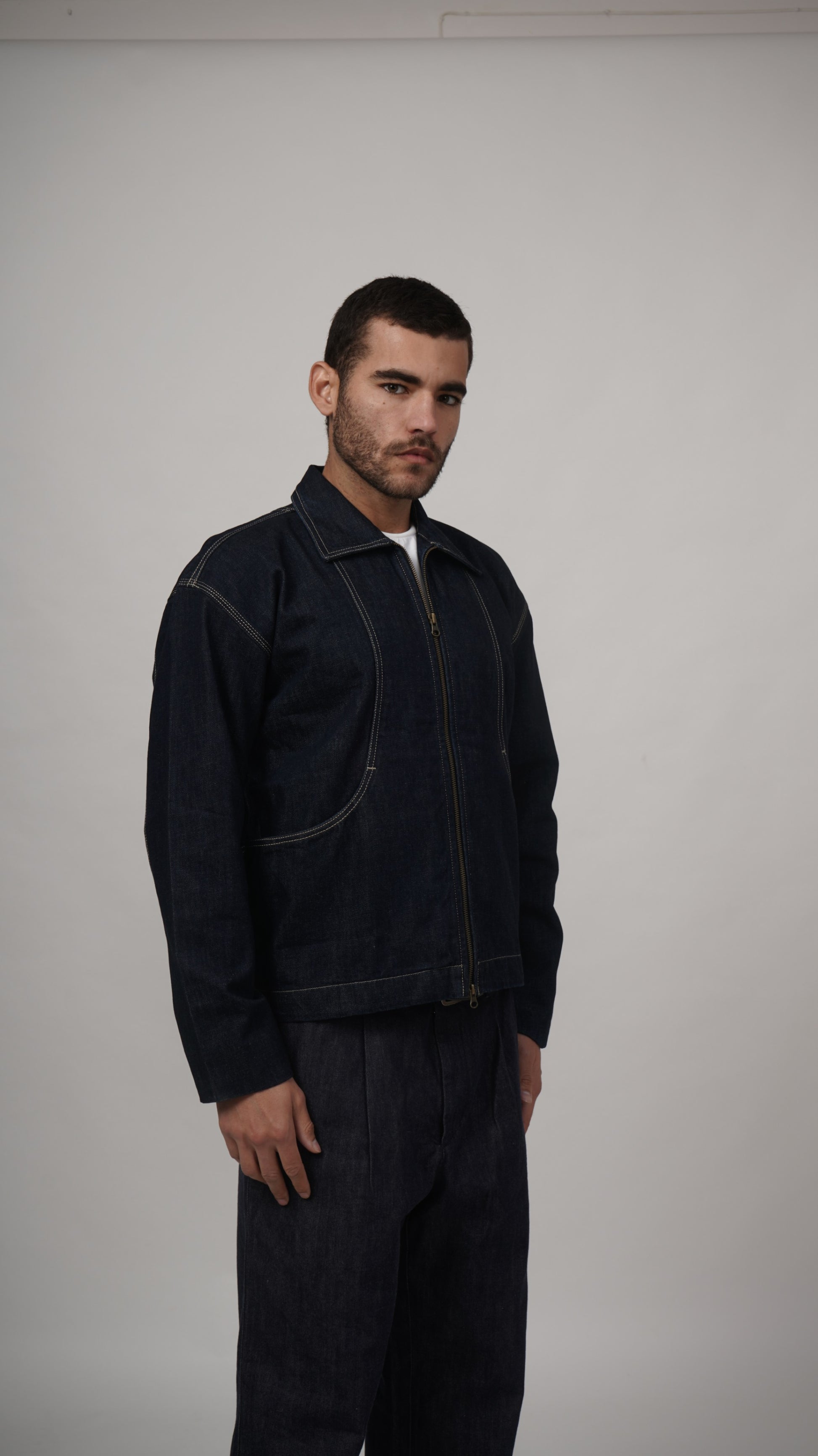 Make a timeless statement with this raw wash denim jacket featuring a distinctive arched design. The authentic blue denim brings classic style to your wardrobe while maintaining versatility for any season.
